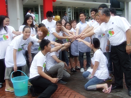 Royal Garden General Manager Somporn Naksuetrong led the early-morning Jan. 19 cleanup effort with employees from the G4S security firm, Ripley’s Believe It or Not! museum, Foodwave and many of the 120 smaller shop owners scrubbing the outside of the mall and its Beach Road entrance.