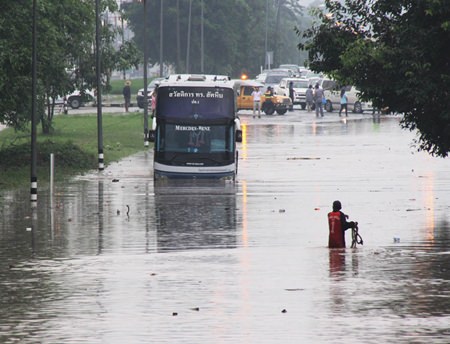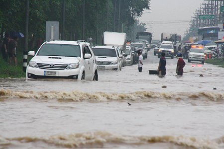 Sattahip Mayor Narong Bunbancherdsri led a team of officials to help residents and manage traffic. He also had firefighting trucks pump away water.