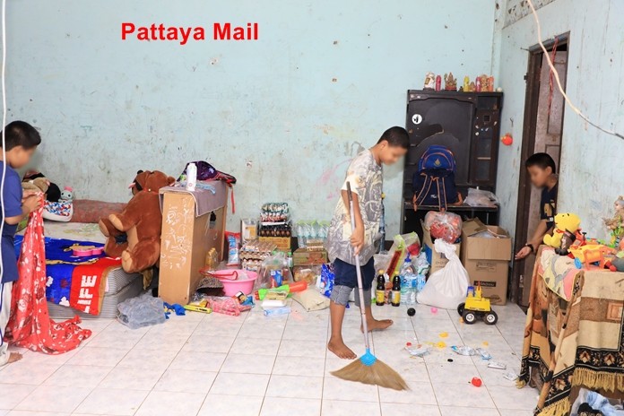 Sattahip residents came out in droves to donate cash and household goods to a family living in an abandoned school, although no one supplied them with proper accommodations.