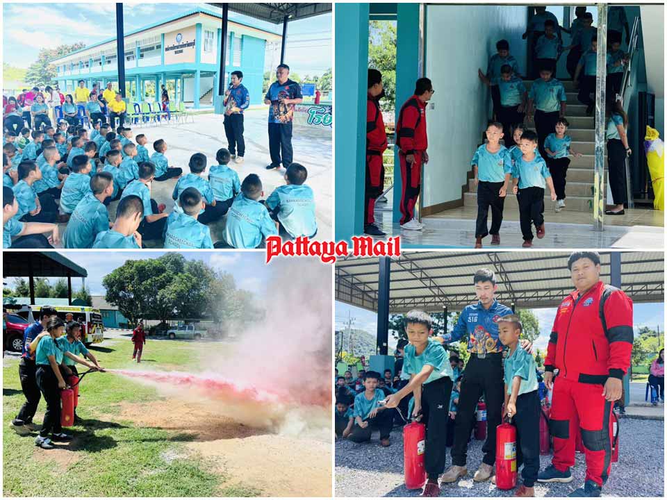 SATTAHIP, Thailand – On August 6, the Kled Kaew Municipality organized a fire safety training program at Ban Khao Chi Chan School in Bang Saray, Sattahip District. This initiative aimed to foster young firefighters and promote comprehensive fire prevention and response skills.