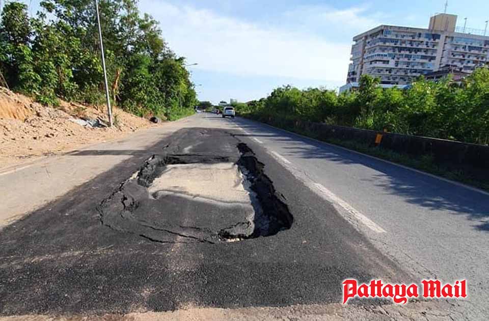 Sinkholes on Pattaya’s railways-parallel road claimed two more accident victims as another motorbike plunged into a water-filled traffic hazard.
