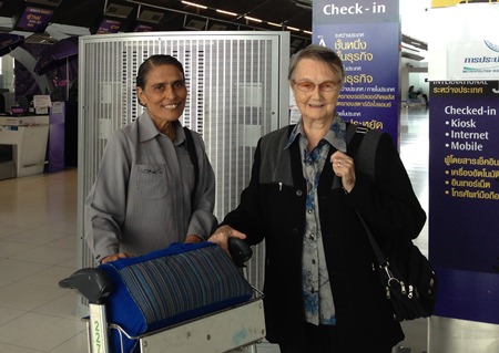 Sister Joan is pictured at Suvarnabhumi Airport on Saturday 28th June eagerly awaiting her ‘business class’ flight to London and then on to Ireland to visit her family. Sister Michelle is also pictured with Sister Joan eagerly awaiting her departure to Cambodia to assist the Good Shepherd Sisters there in continuing the good works of this magnificent organisation.