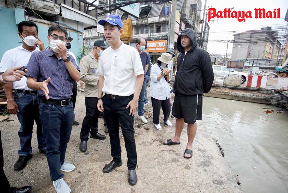 The mayor on June 24 inspected progress of the project to lay pipes that will bring runoff to the canal from Thepprasit Road, South Road and Pratamnak Hill. The canal also accepts water from pipes on Third Road.