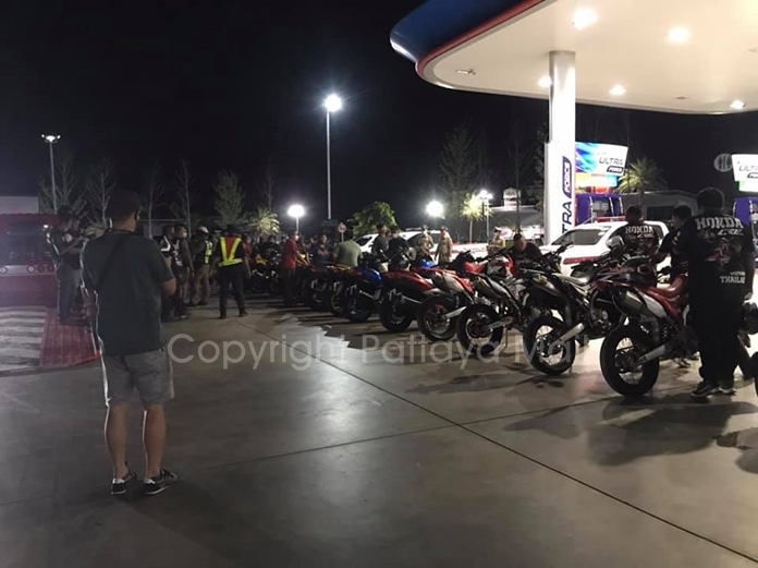 An unspecified number of people were arrested in the raid at a PTT gas station on Highway 36 May 30. Sixteen Yamaha motorbikes were seized.