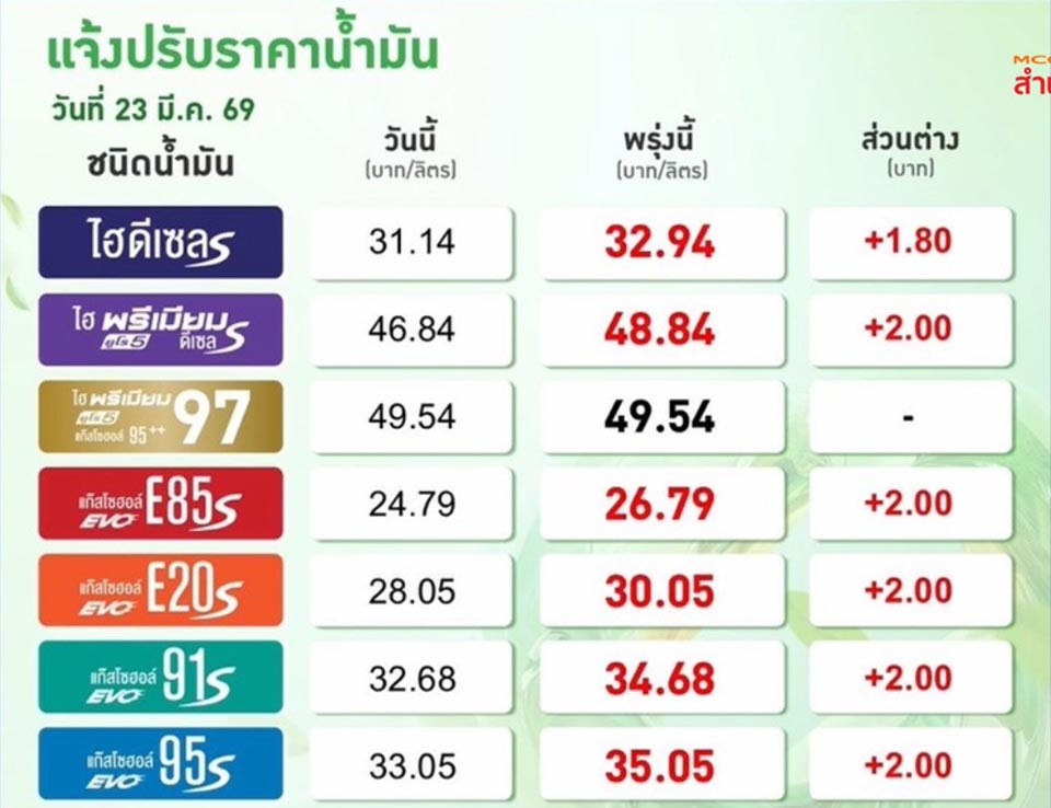 Furthermore, the adjustment aims to balance regional prices. With neighboring Malaysia recently raising its diesel price from 32.40 THB to 38.70 THB per liter on March 16, keeping Thai prices artificially low would incentivize cross-border fuel smuggling and hoarding for speculation. (TNA)