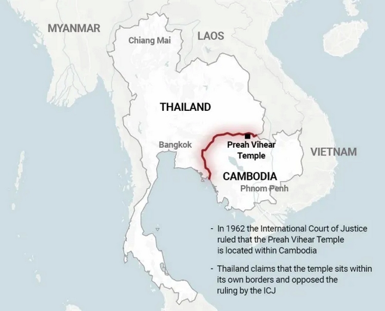 Border rows between the two neighbors go back over 100 years when disputed maps were drawn up by French colonialists who then ruled Cambodia but not Thailand. Over the years, 200 people have been killed or injured in periodic flareups at sensitive spots which mostly include temple ruins. Whilst Cambodia invariably seeks international rulings in its favour, Thailand’s position is that territorial disputes should be settled by the two parties alone.