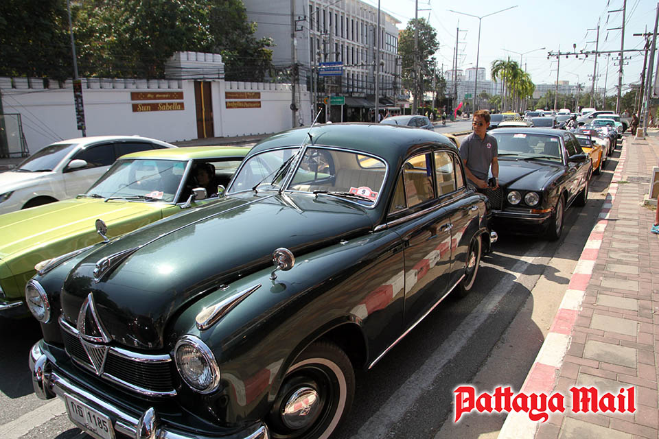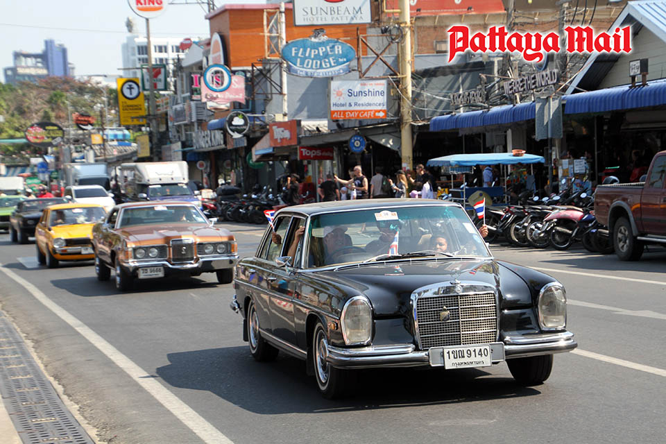 Ten of the rarest and most valuable classic cars were showcased in front of The Barrel House, while the remaining vehicles were displayed along Pratumnak Soi 4 and Soi 5. Traffic remained open with one lane allocated for the parade, and Pattaya City Police and municipal officers ensured smooth traffic flow and safety throughout the route.