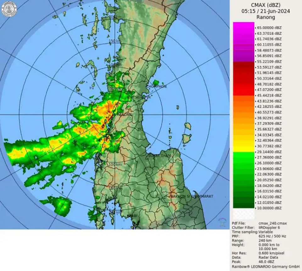 The Meteorological Department forecasts weather for the next 24 hours. The southwest monsoon covering the Andaman Sea, Thailand, and the Gulf of Thailand is strengthening. Additionally, a low-pressure area covers the upper part of Vietnam and the central South China Sea. This condition will result in increased rainfall across Thailand, with heavy rain in some places in the Northeast and Central regions, including Bangkok and its vicinity. There will be very heavy rain in some areas of the East and Western Southern regions. Residents in these areas should be cautious of heavy to very heavy rainfall and accumulated rain, which may cause flash floods and forest runoffs, especially in foothill areas near waterways and low-lying areas.