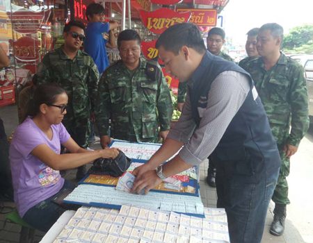 She is the second person arrested in as many months in Pattaya for selling “tickets for gold”. In May, a Nongprue man was caught selling tickets that offered gold ornaments as prizes, instead of cash. Tickets were sold for 40, 60 and 120 baht each depending on the weight of gold for each category of tickets.
