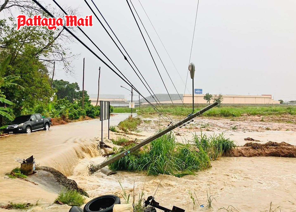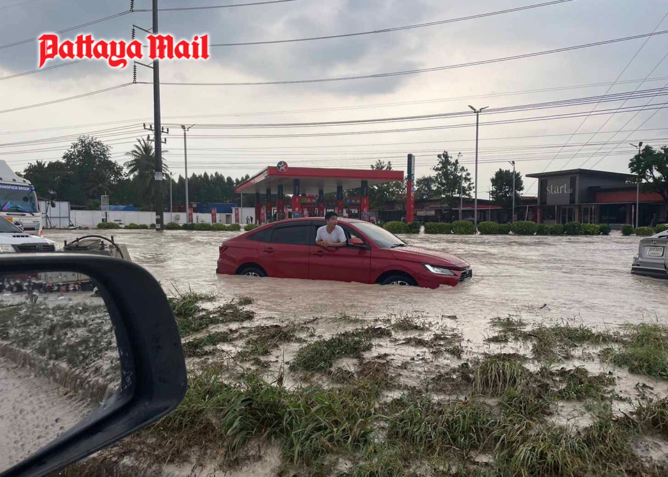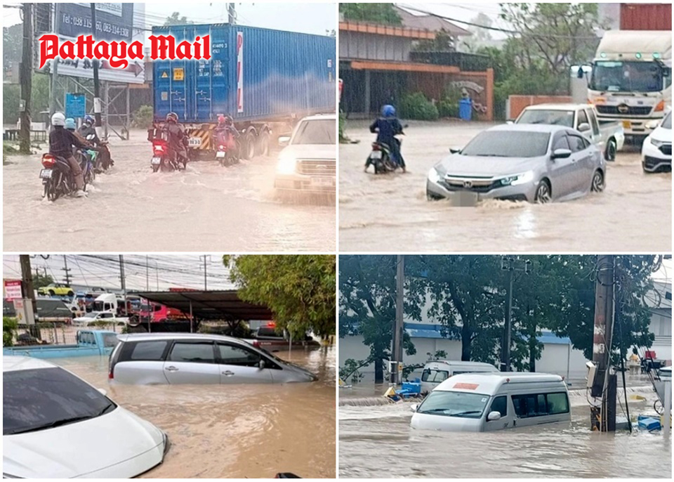 Simultaneously, relentless downpours on Highway 331 Mab Eiang-Laem Chabang Road near the Pintong 1-2 Industrial Estates combined with runoff from nearby hills, submerged vehicles and created treacherous driving conditions for commuters.