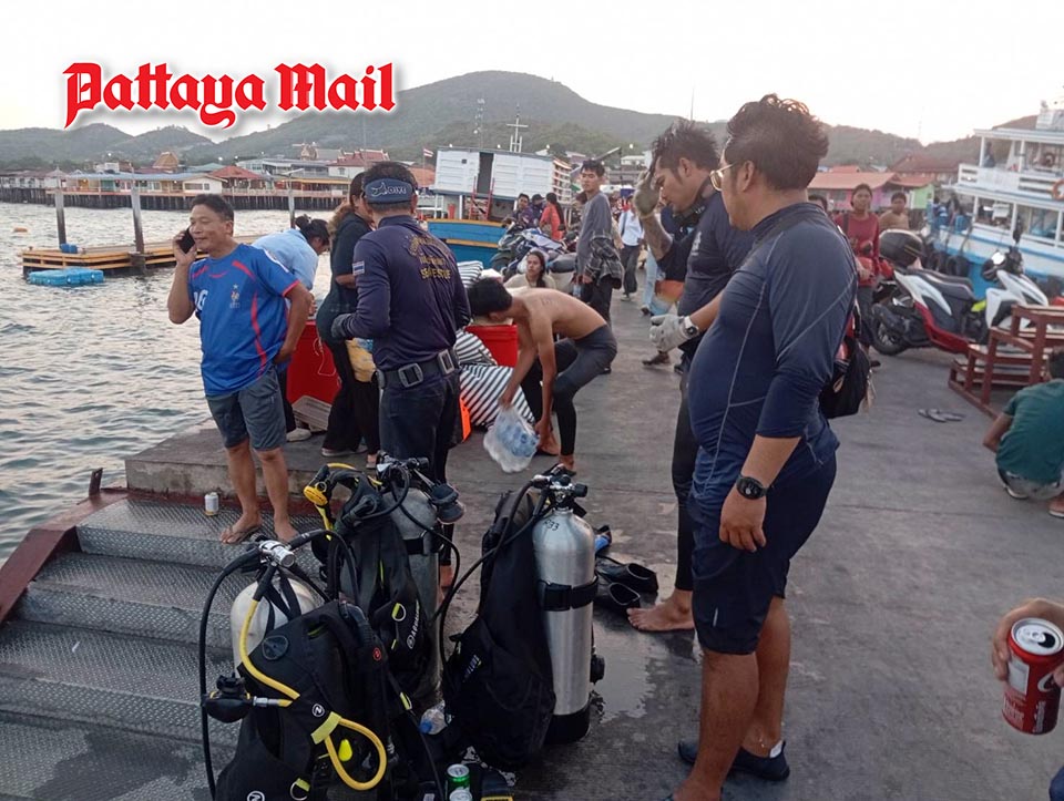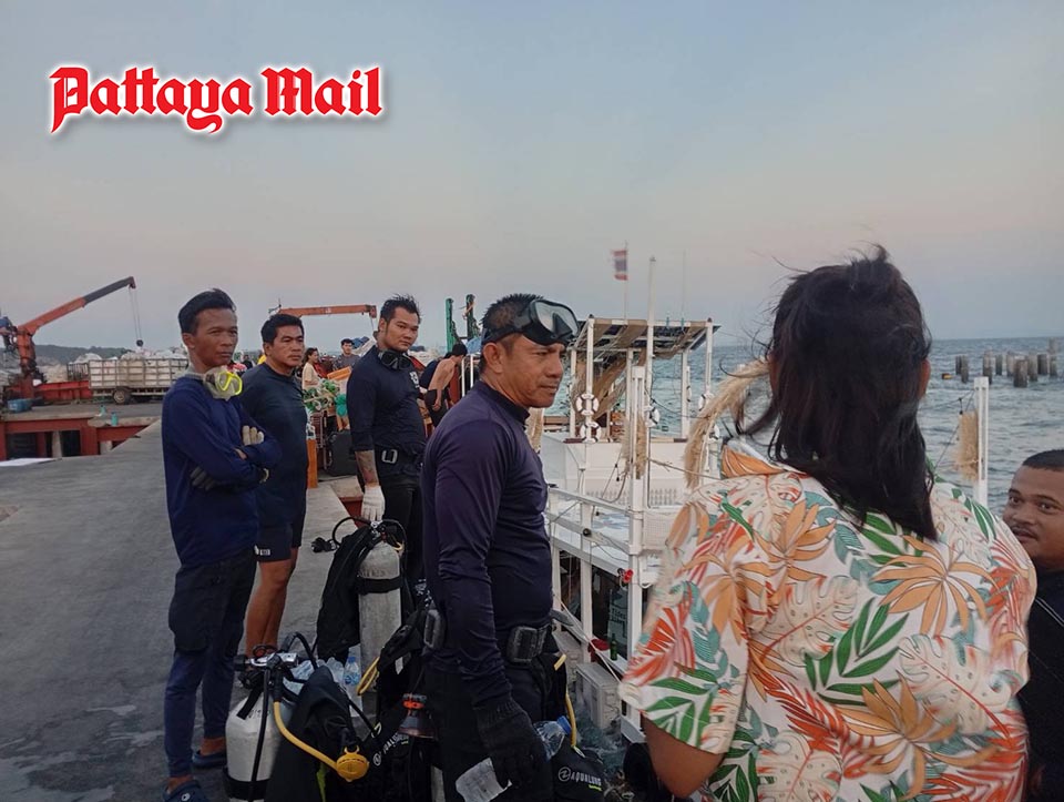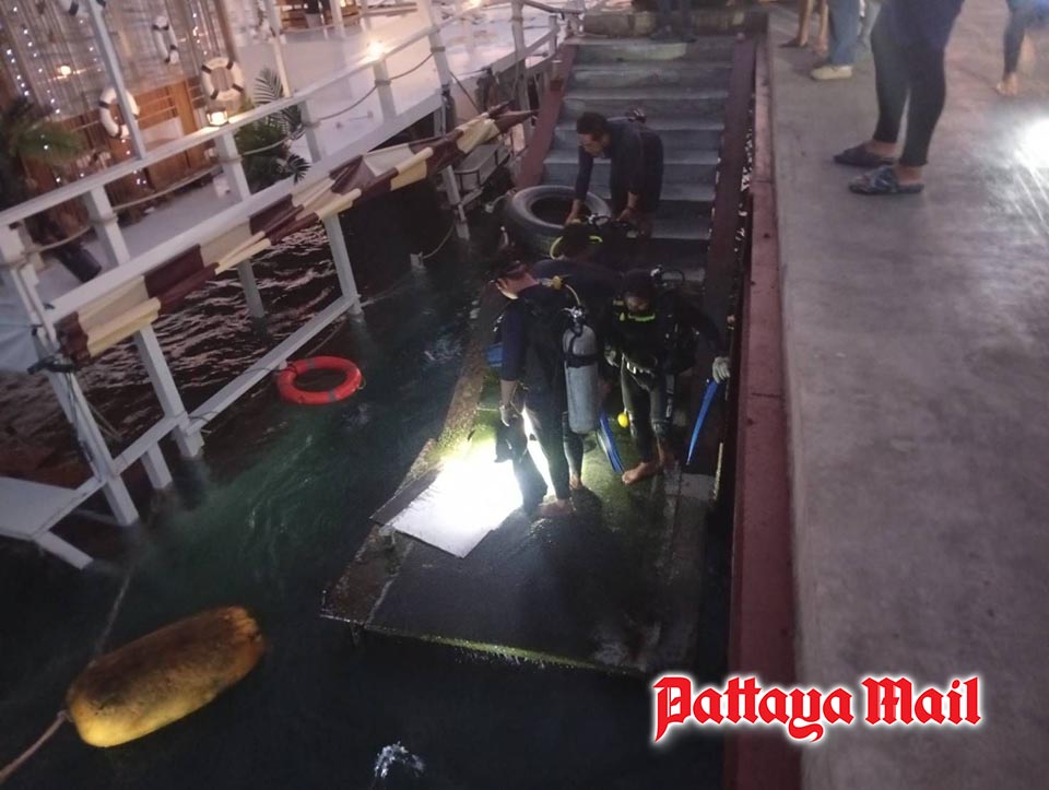 Following the report, Pattaya Mayor Poramet Ngampichet ordered the city’s marine disaster prevention team to respond immediately. Rescue boat 389, along with 13 officers from both Pattaya and Jomtien divisions, was dispatched to the scene with diving equipment and water pumps.