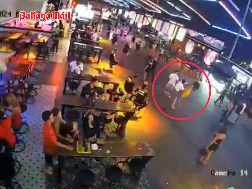 PATTAYA, Thailand – CCTV footage taken in front of an entertainment venue on Walking Street, South Pattaya, captured a disturbing incident where two unidentified foreign men attacked a transgender woman at 3 a.m. on June 17. One of the assailants, dressed in a white shirt and shorts, struck the victim, who was wearing a yellow dress, causing her to collapse and lay unconscious on the street. Despite attempts by the victim’s friends to chase them, the attackers fled the scene.