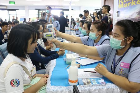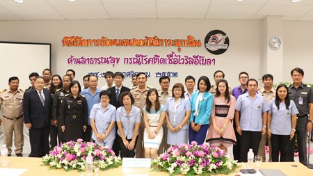 The seminar then turned to a scenario in which a 150-passenger flight from an Ebola-stricken nation arrives in Thailand with three passengers exhibiting Ebola-like symptoms, including fever, sore throat and vomiting.
