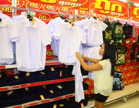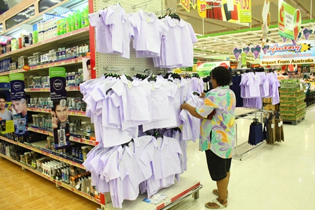 “Even though uniforms are more expensive than last year, my financial status is much more flexible and there is enough left over to buy other supplies,” said Naparat Thimphan, a parent shopping at South Pattaya’s Big C supermarket.