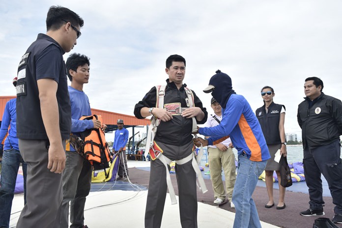 Pattaya and Tourist Division police met with representatives of 16 companies offering parasailing and sea-walking adventures July 14, a day after Chonburi’s governor called on all the province’s watersports operators to recheck safety equipment and follow regulations.