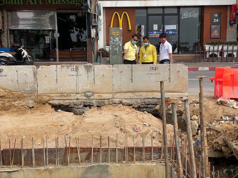 The work is the continuation of a project to lay larger drainage pipes under all of Beach Road, formally known as First Road, which technically extends through Walking Street to Bali Hai Pier.