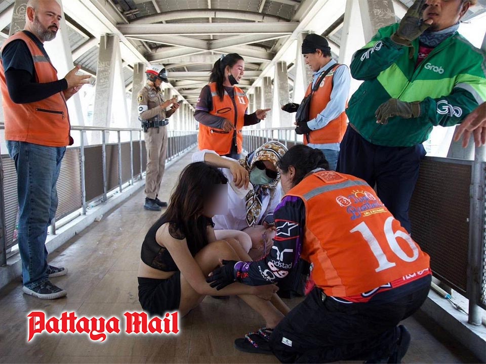 PATTAYA, Thailand – A young woman was safely rescued after becoming distressed on a pedestrian bridge near the Central Pattaya intersection on Sukhumvit Road on April 18.