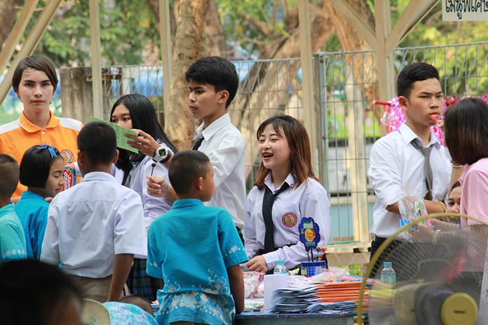 In Nong Plalai, former Culture Minister Sukumol Kunplome presided over the distribution of 20 bicycles and local students put on stage shows. In Pong, 1,000 local youths attended the sub-district’s event.