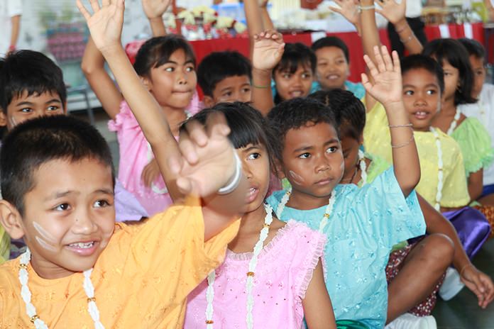Around the area, Nongprue Nursery School hosted a talent show and quiz where youths won prizes while children gave alms to monks at Ban Nernplabwan School. At Aksorn Pattaya School, kindergarten students danced for parents and teachers.