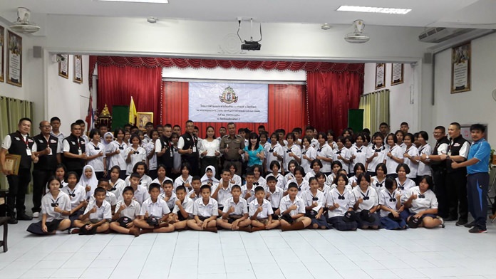 Pattaya police chief Pol. Col. Apichai Kroppech kicked off the program at Pattaya School No. 5, which was designated by Provincial Police Region 2 as Chonburi’s pilot school for the new program.