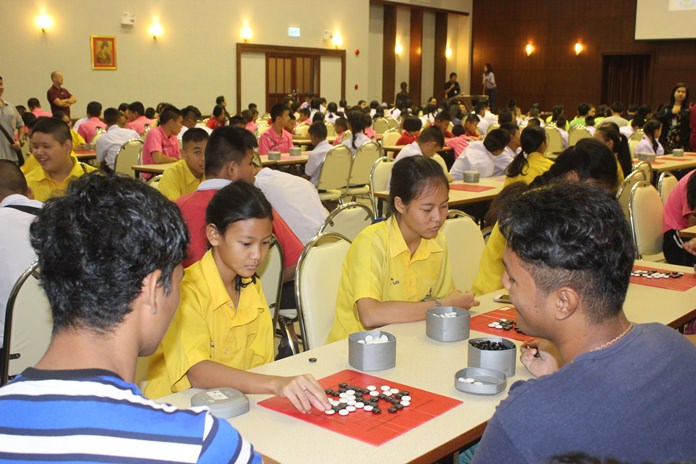 Students from Pattaya public schools, and the private Duang Manee Sriracha and Phuru Yor Sor Sor 80 schools joined kids from the Father Ray schools and shelters to try their hands at the Japanese board game or crosswords.