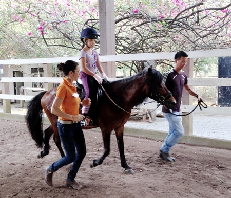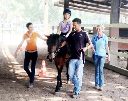 Throughout Thailand many riding clubs are starting to understand the huge benefits of Equine Assisted Therapy. Recently, Horse Lovers Club in Bangkok, along with instructors from Thai Polo & Equestrian Club, have been attending training & coaching from riding therapist Sandra Cooper at Horseshoe Point Pattaya. Sandra has trained and helped qualify riding instructors and volunteers for many years in Malaysia, now living in Thailand, a qualification system will be implemented by the end of 2013. A log book for qualifications will be acquired from the UK and adapted for Thailand.