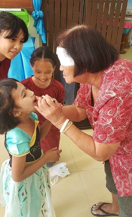What they also do is pay respect. As the visit took place a few days before Loy Krathong, the children knelt down, bowed and gave respect to the elderly residents, showing them that they are still worthwhile and still deserving of respect.