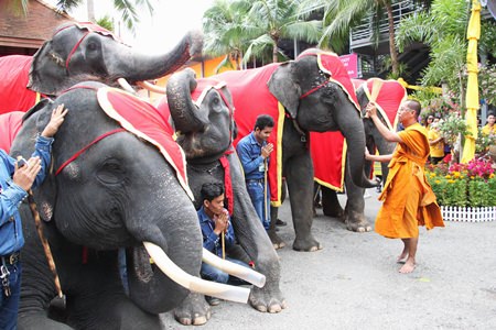 The elephants again were on hand July 31 when the candles were formally presented to abbots of Sangwararam Wowrnwiharn, Samakeebanpot, Amparam, Bang Saray Kongkaram, Najomtien, Khao Khantamat, Nong Japtao, Khao Chi Chan and Sattahip temples.