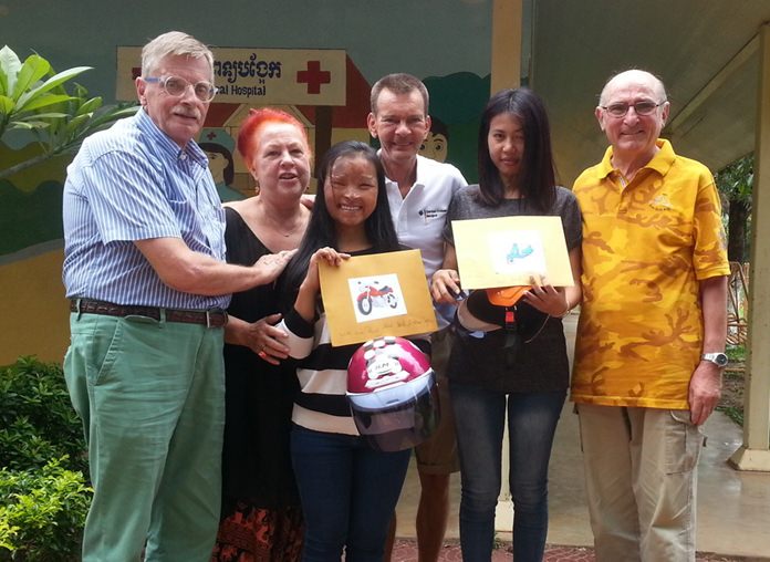 After meeting both in Phnom Penh, Sopin donated US$100 for Waeow plus a Diana Group shirt while Hofer, Schweitzer and the RCEB’s Martin Brands donated more than $700 so each would have enough money to buy a motorbike.