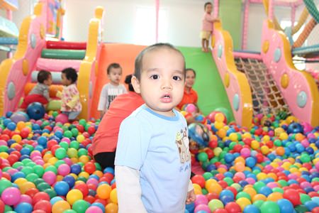 “Who are you?” A youngster is only distracted from playing with the colorful balls for just an instant.