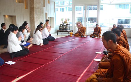 General Manager Dominique Ronge hosted the Oct. 7 ceremony at the 165-room Pratamnak Soi 5 hotel. The “Keun Baan Mai” service held to bless the new structure and its inhabitants was administered by nine monks from Chong Lom Temple who chanted in Pali while holding white “sai sin” string. Buddhists believe the monks’ voices reverberate through the string and bring good luck to anything and anyone within range of the waves.