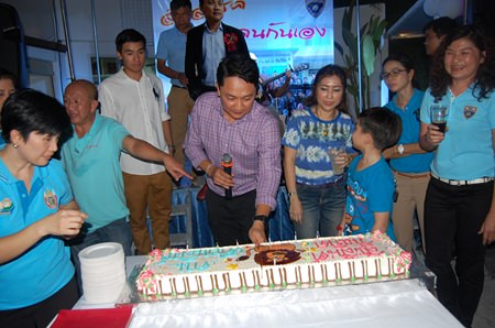 Pol. Col. Prapansak Prasarnsuk cuts his birthday cake during the evening party at Bali Hai.