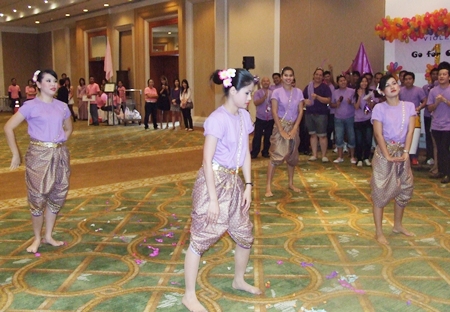 Some of the members of the purple team perform traditional Thai dance.