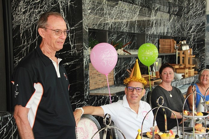 Center director Sister Apinya Sornjan, staff, and Lewis Underwood, president of Jester Car for Kids, hosted the March 5 party at the Mera Mare Hotel.