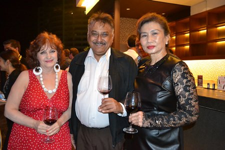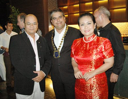 (L to R) Chonlatee Nakamadee, guru of the dusitD2 baraquda Pattaya, Tony Malhotra, President of Skål Pattaya and East Thailand and Rungratree Thongsai.