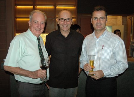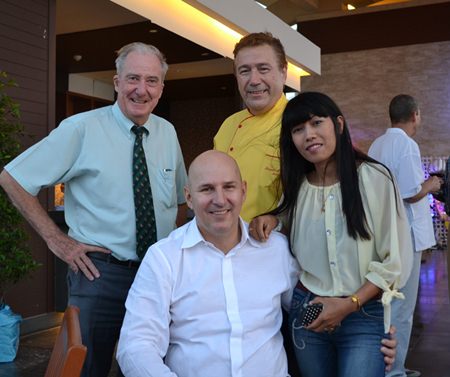 (Back, L to R) Dr. Iain Corness, Chef Alberto Bruni, and Boonyang Maspfuhl with the evening’s guest speaker Jens Maspfuhl (front).