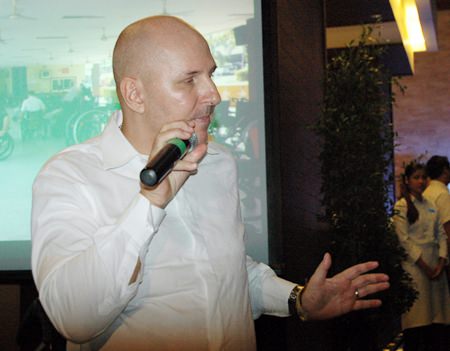The guest speaker was Jens Maspfuhl, a man with some very different reasons to have an association with Pattaya. Ten years ago, Jens was in a road accident on his way to the Eastern Star golf course. In the emergency department, the Bangkok Hospital Pattaya’s neurosurgeon Dr. Alongkorn found that Jens had fractured his seventh cervical vertebra, a catastrophic injury which would condemn him to being a paraplegic and in a wheelchair for the rest of his life.