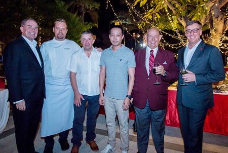 (L-R) Area General Manager for Amari Pattaya Robert Rijnders, Executive Chef Shaun Venter, Paul Strachan from Pattaya Mail, Charnsak Leenasiri Brand Manger Ital Thai, Rodney Charman and Amari Resident Manager Richard Gamlin gather for a group photo at the January event.
