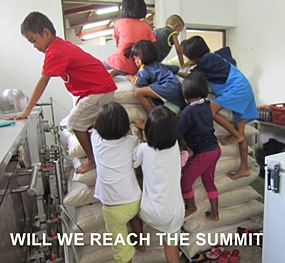 While we were having lunch with Father Peter, visitors and staff, which is always a pleasure, the rice was unloaded which provided the children with a new toy for climbing and food for the next 6 months. What more could you ask for?