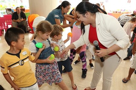 Royal Cliff’s Funtasea – Kids Club Manager, Monica Angeles, with the young participants as they enjoyed the “Over/Under Egg Pass” game.