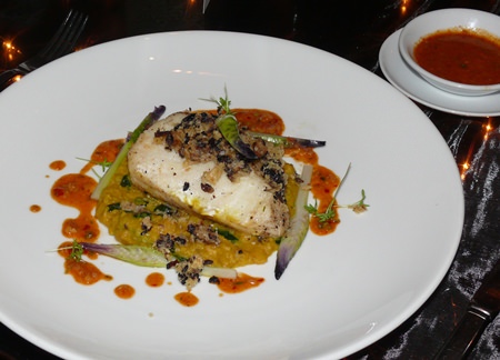 For me, however, the second course was the dish of the night, with Alaskan King Crab and Hong Kong prawn ravioli with saffron-roasted macadamia nuts and Caribbean Malibu cream.