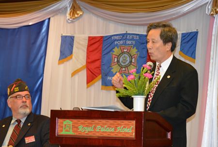 Hans Song, Senior Counselor of the Veteran Affairs Commission greets the gathered the Veterans.