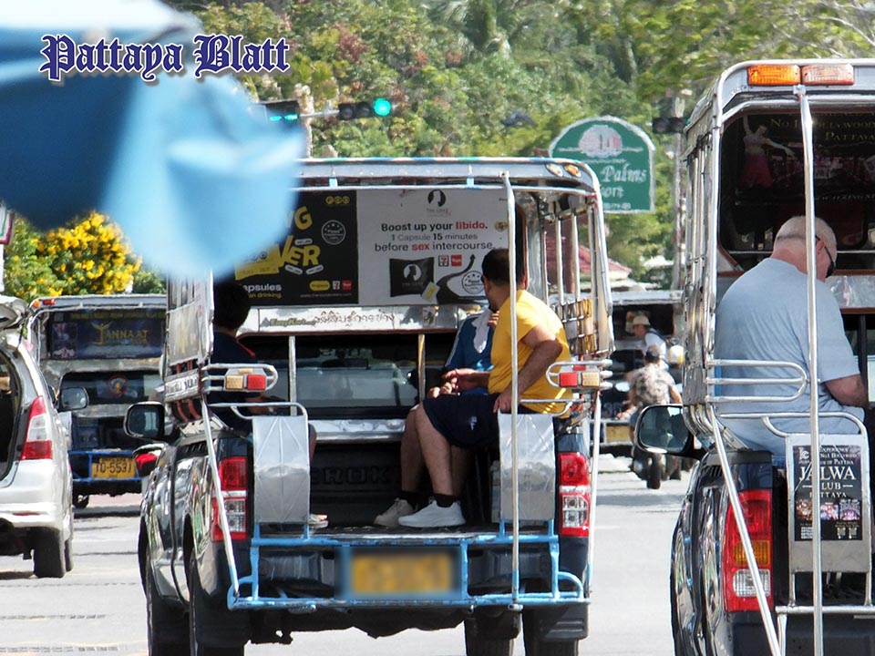 Eine Fahrt mit dem Baht-Bus hilft, Verkehrsstaus und Parkplatzprobleme zu vermeiden und ermöglicht gleichzeitig, die Stadt authentischer zu erleben und mit Einheimischen in Kontakt zu kommen. Die Fahrer kennen die beliebten Touristenziele, Märkte und Einkaufsbereiche, sodass ein bequemes Ein- und Aussteigen möglich ist. Einfach dem Fahrer sagen, wo man aussteigen möchte; die Fahrpreise richten sich nach der zurückgelegten Strecke. Für erfahrene Fahrgäste kann die Fahrt durch Pattaya zudem zu einem unterhaltsamen Erlebnis werden.