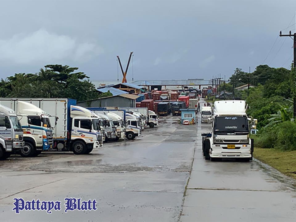 Im Sor Kritawan Hafen in Had Lek, Khlong Yai, warten derzeit mehr als 100 Container-Lkw darauf, ihre Ladung auf nur sieben Frachtschiffe zu verladen, die jeweils 16 bis 24 Container fassen können. Dieser Kapazitätsengpass verursacht einen massiven Stau.