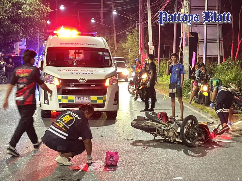 Gegen 22.30 Uhr am 12. Dezember erhielt die Sawang-Boriboon-Rettung Meldungen über einen schweren Unfall an der Kreuzung Sam Yaek Tua Y auf der Takian-Tia-Road in Pattaya. Rettungskräfte sowie medizinische Teams des Pattaya Bhatmakhun Hospitals und des Pattaya City Hospitals eilten umgehend zum Unfallort.
