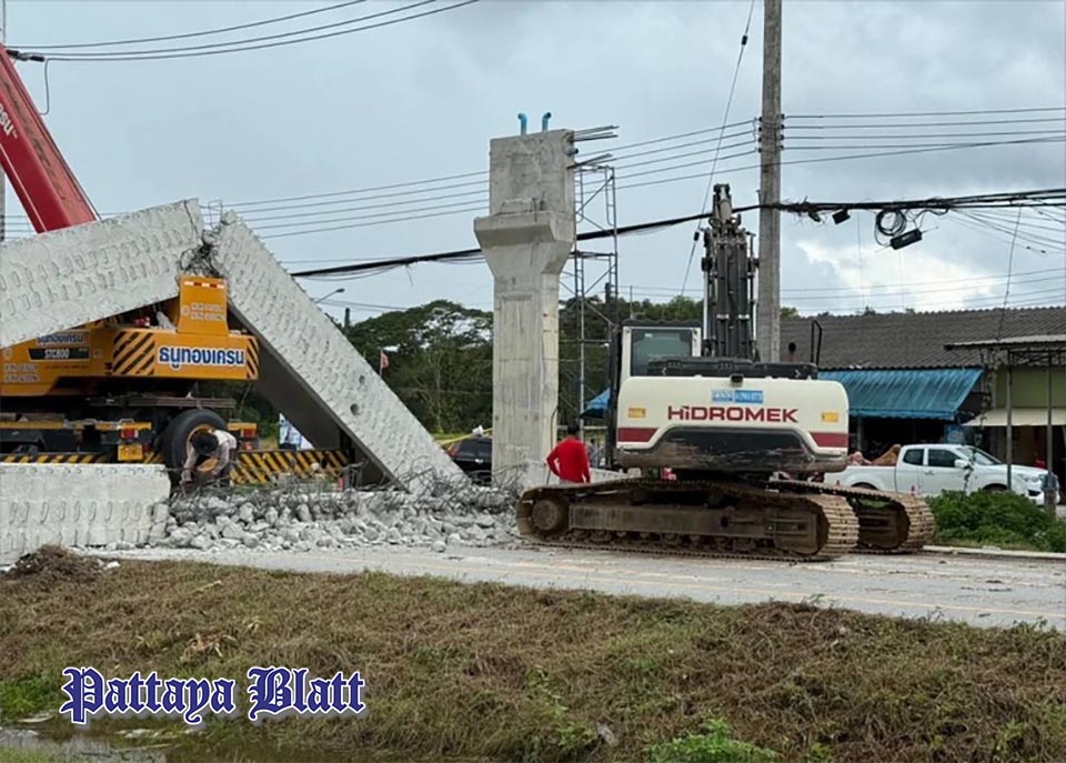 CHANTHABURI, Thailand – Ein Träger einer im Bau befindlichen Fußgängerbrücke ist auf den Highway 317 nahe Ban Na Sai gestürzt, was die Behörden zu einer vorübergehenden Straßensperrung veranlasste. Das thailändische Autobahnamt (DOH) entsandte umgehend Einsatzteams zur Räumung der Fahrbahn. Der Verkehr normalisierte sich noch am 23. August. Verletzte oder Todesopfer wurden nicht gemeldet.