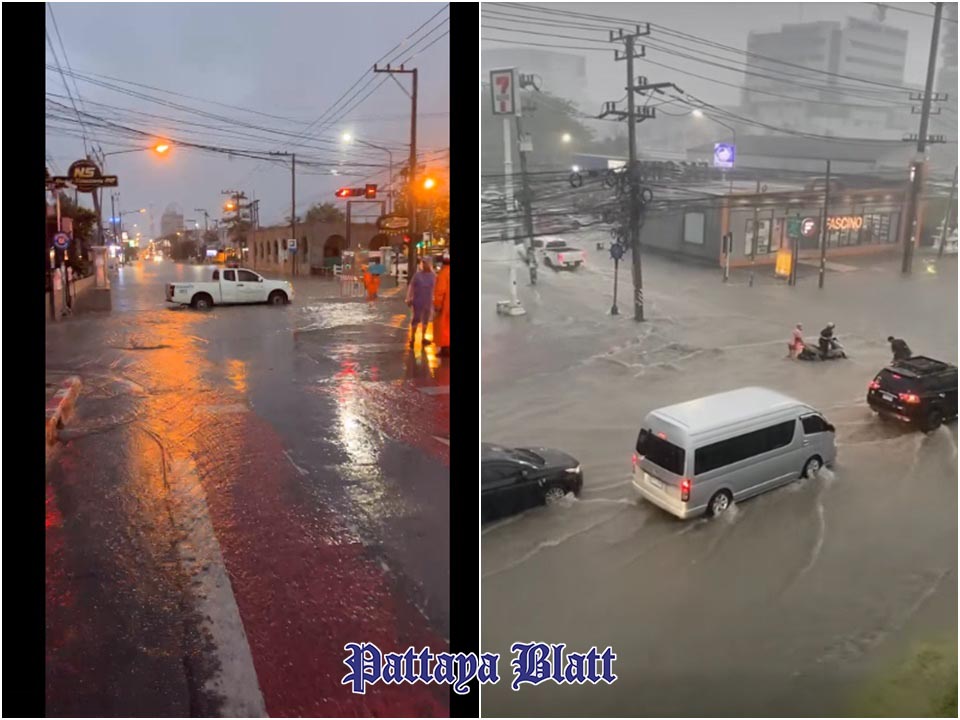 Verkehrsteilnehmer werden dringend aufgefordert, überflutete Stellen zu meiden, insbesondere die Sukhumvit Road im Süden Pattayas nahe der Unterführung Central Pattaya sowie die Kreuzung der Third Road nahe dem Restaurant Mum Aroi, die wegen tief stehenden Wassers vorübergehend gesperrt wurde. „Dieser Bereich steht bei jedem Regen, ob stark oder schwach, schnell unter Wasser“, kommentierte ein Anwohner. „Das Wasser braucht immer seine Zeit, um abzufließen.“