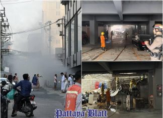 Rauchwolken über Zentral-Pattaya nach Brand nahe Beach Road