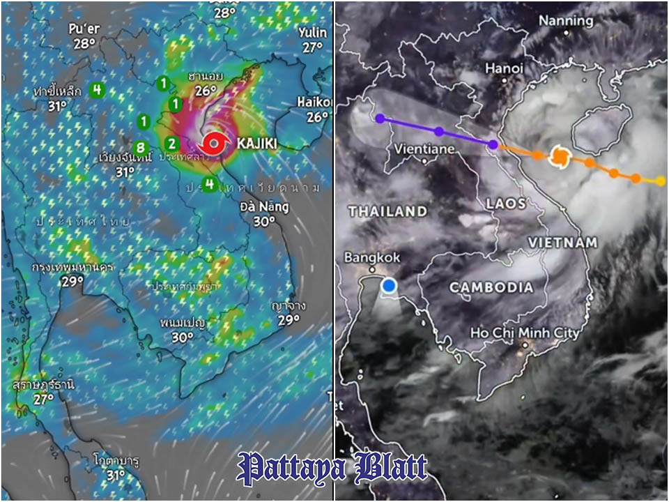 PATTAYA, Thailand – Die Behörden warnen sowohl Bewohner als auch Besucher, besonders wachsam zu sein, da die tropische Depression „Kajiki“ vom 25. bis 27. August über Thailand zieht und landesweit starken Regen sowie gefährliche Meeresbedingungen mit sich bringt.