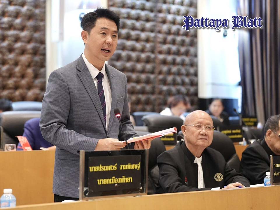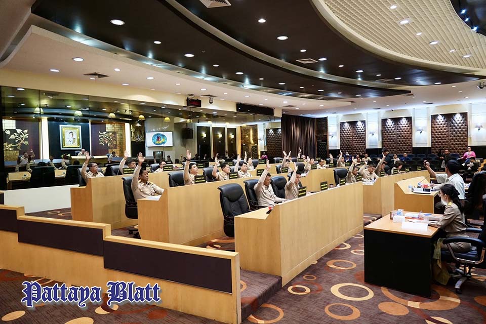 PATTAYA, Thailand – Der Stadtrat von Pattaya hielt seine 3. Ordentliche Sitzung, 1. Tagung 2025, im Taksin-Saal des Rathauses ab. Unter dem Vorsitz von Stadtratspräsident Banlue Kullavanich nahmen Stadtleiter, darunter Bürgermeister Poramet Ngampichet, stellvertretende Bürgermeister, Sekretäre, Berater, Abteilungsleiter und weitere zuständige Beamte, an der Sitzung teil.